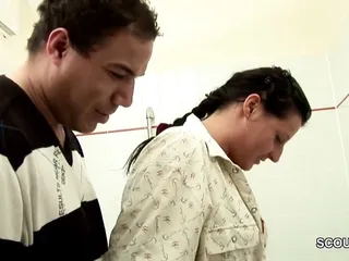 Harter Sex im Treppenhaus geile deutsche Milf und ihr Stiefsohn beim versauten Sex