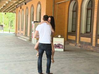 July Sun und ihr Lover ficken auf der öffentlichen Toilette am Bahnhof – Skinny Sex